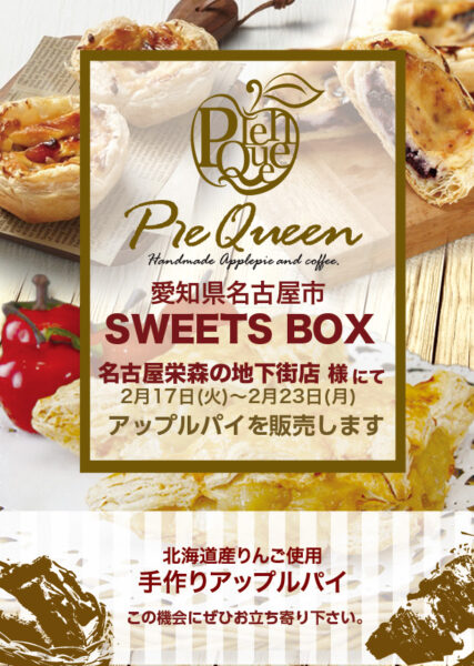 SWEETS BOX名古屋栄森の地下街店様にてアップルパイを販売します | パイクイーン 焼きたてアップルパイとカフェ