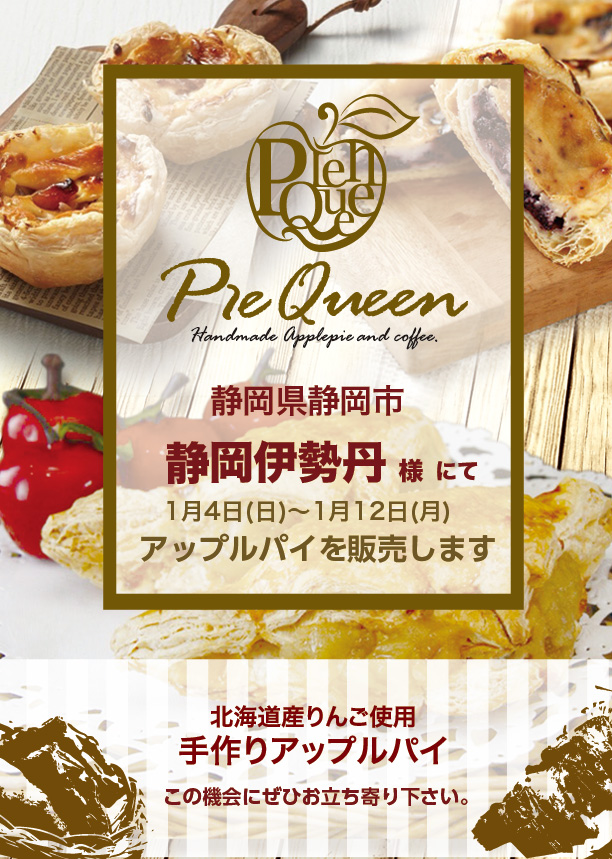 ◆ 静岡伊勢丹様にてアップルパイを販売します 日時: 2026年01月04日~2026年01月12日 場所:静岡県静岡市葵区呉服町1丁目7 ◆ SWEETS BOX名駅地下街サンロード店様にてアップルパイを販売します 日時: 2026年01月14日~2026年01月20日 場所:愛知県名古屋市中区錦3丁目25 ◆ 中テレ祭り2025にてアップルパイを販売します 日時: 2025年12月05日~2025年12月07日 場所:福島県郡山市南2丁目52-52 ビッグパレットふくしま3階 ◆ JR仙台駅2Fステンドグラス前にてアップルパイを販売します 日時: 2025年12月09日~2025年12月16日 場所:宮城県仙台市青葉区中央1丁目1-1 ◆ 大船ルミネウィング様にてアップルパイを販売します 日時: 2025年12月14日~2025年12月25日 場所:神奈川県鎌倉市大船1丁目4-1 JR大船駅 南改札口正面 ◆ イオン新さっぽろ店様にてアップルパイを販売します 日時: 2025年12月26日~2025年12月31日 場所:北海道札幌市厚別区厚別中央2条5丁目7-1 ◆ チ・カ・ホ札幌駅前通り地下広場にてアップルパイを販売します 日時: 2025年12月17日~2025年12月17日 場所:北海道札幌市中央区 札幌駅前地下歩行空間 ◆ きたキッチンオーロラタウン店様にてアップルパイを販売します 日時: 2025年12月10日~2025年12月16日 場所:北海道札幌市中央区大通西2丁目 さっぽろ地下街オーロラタウン ◆ スーパーアークス北24条店様にてアップルパイを販売します 日時: 2025年12月12日~2025年12月14日 場所:北海道札幌市北区北24条西9丁目1-1 ◆ チ・カ・ホ札幌駅前通り地下広場にてアップルパイを販売します 日時: 2025年12月08日~2025年12月09日 場所:北海道札幌市中央区 札幌駅前地下歩行空間 ◆ イオン江別店様にてアップルパイを販売します 日時: 2025年12月06日~2025年12月09日 場所:北海道江別市幸町35番地 ◆ ラルズマート啓明店様にてアップルパイを販売します 日時: 2025年11月17日~2025年11月20日 場所:北海道札幌市中央区南11条西21丁目4-21 ◆ イオン札幌手稲駅前店様にてアップルパイを販売します 日時: 2025年11月18日~2025年11月23日 場所:北海道札幌市手稲区前田1条11丁目1-1 ◆ イオンスーパーセンター石狩緑園台店様にてアップルパイを販売します 日時: 2025年10月30日~2025年11月04日 場所:北海道石狩市緑苑台中央1丁目2 ◆ スーパーアークス宮の沢店様にてアップルパイを販売します 日時: 2025年11月11日~2025年11月13日 場所:北海道札幌市手稲区西宮の沢5条2丁目11-20 ◆ スーパーアークス北24条店様にてアップルパイを販売します 日時: 2025年11月07日~2025年11月09日 場所:北海道札幌市北区北24条西9丁目1-1 ◆ 北海道どさんこプラザ 札幌店様にてアップルパイを販売します 日時: 2025年11月19日~2025年11月25日 場所:北海道札幌市北区北6条西4丁目 ◆ あみプレミアム・アウトレット様にてアップルパイを販売します 日時: 2025年11月21日~2025年11月30日 場所:茨城県稲敷郡阿見町よしわら4丁目1-1 ◆ グランデュオ立川様にてアップルパイを販売します 日時: 2025年11月12日~2025年11月18日 場所:東京都立川市柴崎町3丁目2-1 ◆ 八木橋百貨店様にてアップルパイを販売します 日時: 2025年11月06日~2025年11月11日 場所:埼玉県熊谷市仲町74 ◆ スーパーアークス星置店様にてアップルパイを販売します 日時: 2025年10月08日~2025年10月10日 場所:北海道札幌市手稲区手稲山口478-1 ◆ イオン石狩緑苑台店様にてアップルパイを販売します 日時: 2025年10月30日~2025年11月04日 場所:北海道石狩市緑苑台中央1丁目2 ◆ ビッグハウス エクストラ店様にてアップルパイを販売します 日時: 2025年10月15日~2025年10月10日 場所:北海道札幌市豊平区平岸1条22丁目2-15 ◆ イオン東札幌店様にてアップルパイを販売します 日時: 2025年10月02日~2025年10月07日 場所:北海道札幌市白石区東札幌3条2丁目1 ◆ イオン岩見沢店様にてアップルパイを販売します 日時: 2025年10月16日~2025年10月21日 場所:北海道岩見沢市大和4条8丁目1 ◆ イオン札幌藻岩店様にてアップルパイを販売します 日時: 2025年10月09日~2025年10月14日 場所:北海道札幌市南区川沿2条2丁目1-1 ◆ きたキッチンオーロラタウン店様にてアップルパイを販売します 日時: 2025年10月22日~2025年10月28日 場所:北海道札幌市中央区大通西2丁目 さっぽろ地下街オーロラタウン ◆ チ・カ・ホ札幌駅前通り地下広場にてアップルパイを販売します 日時: 2025年10月29日~2025年10月29日 場所:北海道札幌市中央区 札幌駅前地下歩行空間 ◆ ココノ ススキノ様にてアップルパイを販売します 日時: 2025年10月31日~2025年10月31日 場所:北海道札幌市中央区南4条西4丁目1-1 ◆ くるるの杜様にてアップルパイを販売します 日時: 2025年10月12日~2025年10月13日 場所:北海道北広島市大曲377-1 ◆ nonowa武蔵小金井様にてアップルパイを販売します 日時: 2025年10月27日~2025年11月05日 場所:東京都小金井市本町6丁目 ◆ 東武百貨店船橋店様にてアップルパイを販売します 日時: 2025年10月09日~2025年10月15日 場所:千葉県船橋市本町7-1-1 ◆ SWEETS BOX西武高田馬場店様にてアップルパイを販売します 日時: 2025年10月07日~2025年10月13日 場所:東京都新宿区高田馬場1丁目35-2 高田馬場駅 ◆ 近鉄百貨店橿原店様に